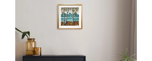 Immerse yourself in the serene beauty of Birchtree Forest with this original acrylic painting by WR ImperfectArt. This 12x12 inch canvas panel artwork captures the essence of autumn, featuring metallic...