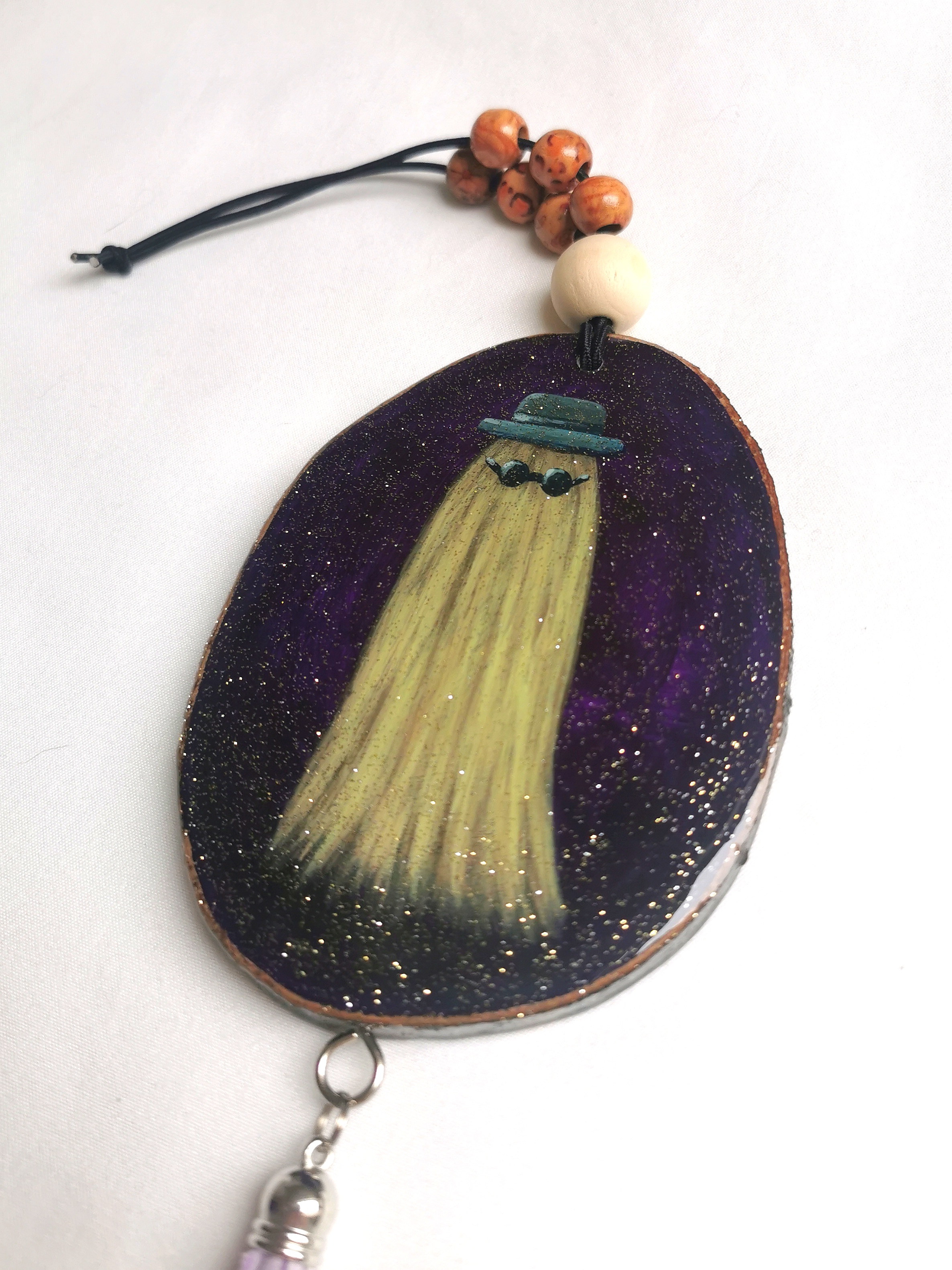Acrylic art on wood slice, 100% created&handmade by WR ImperfectArt, finished with a layer of resin for a longlasting life, this Halloween decor will bring a big smile all year round.