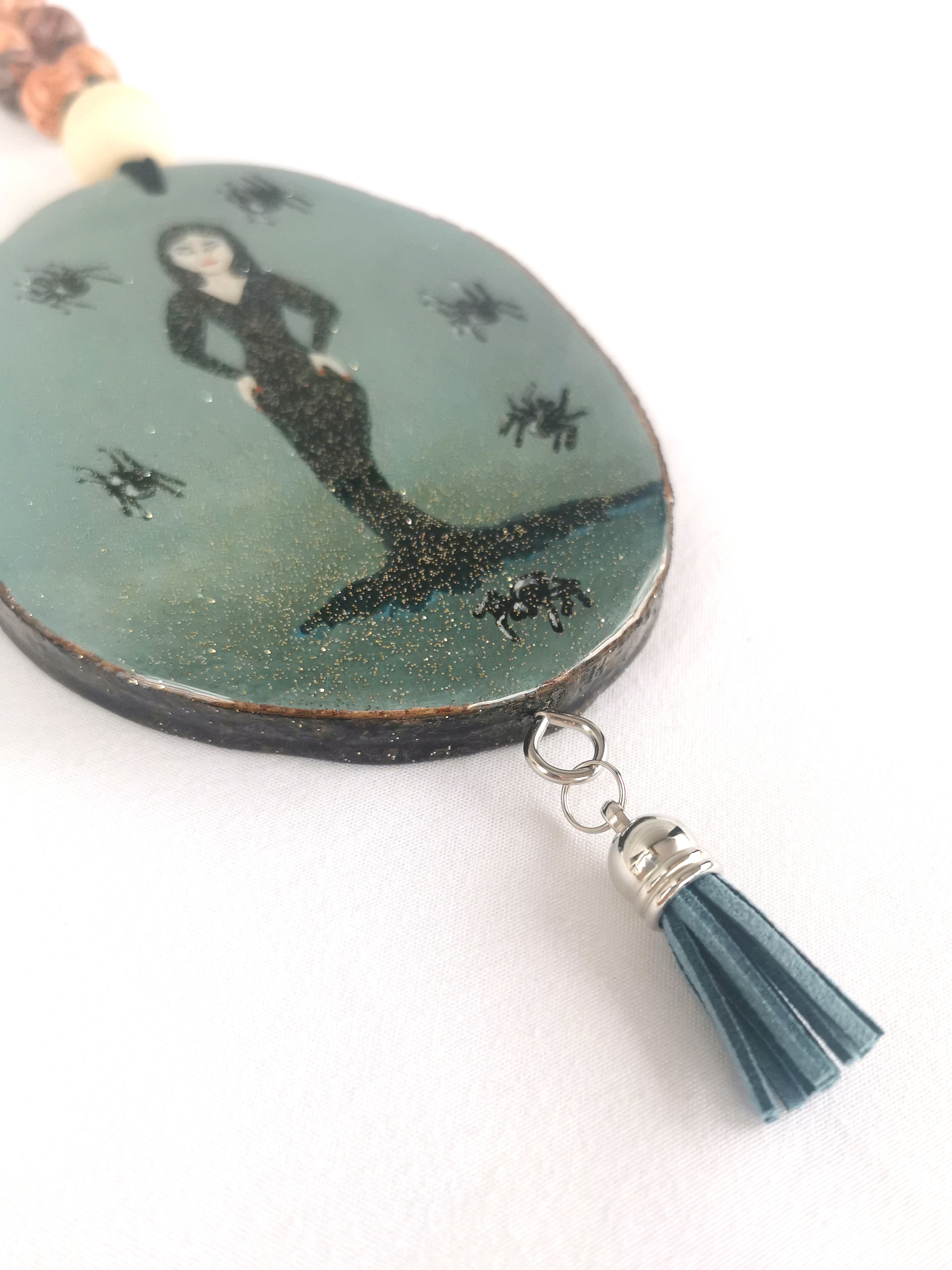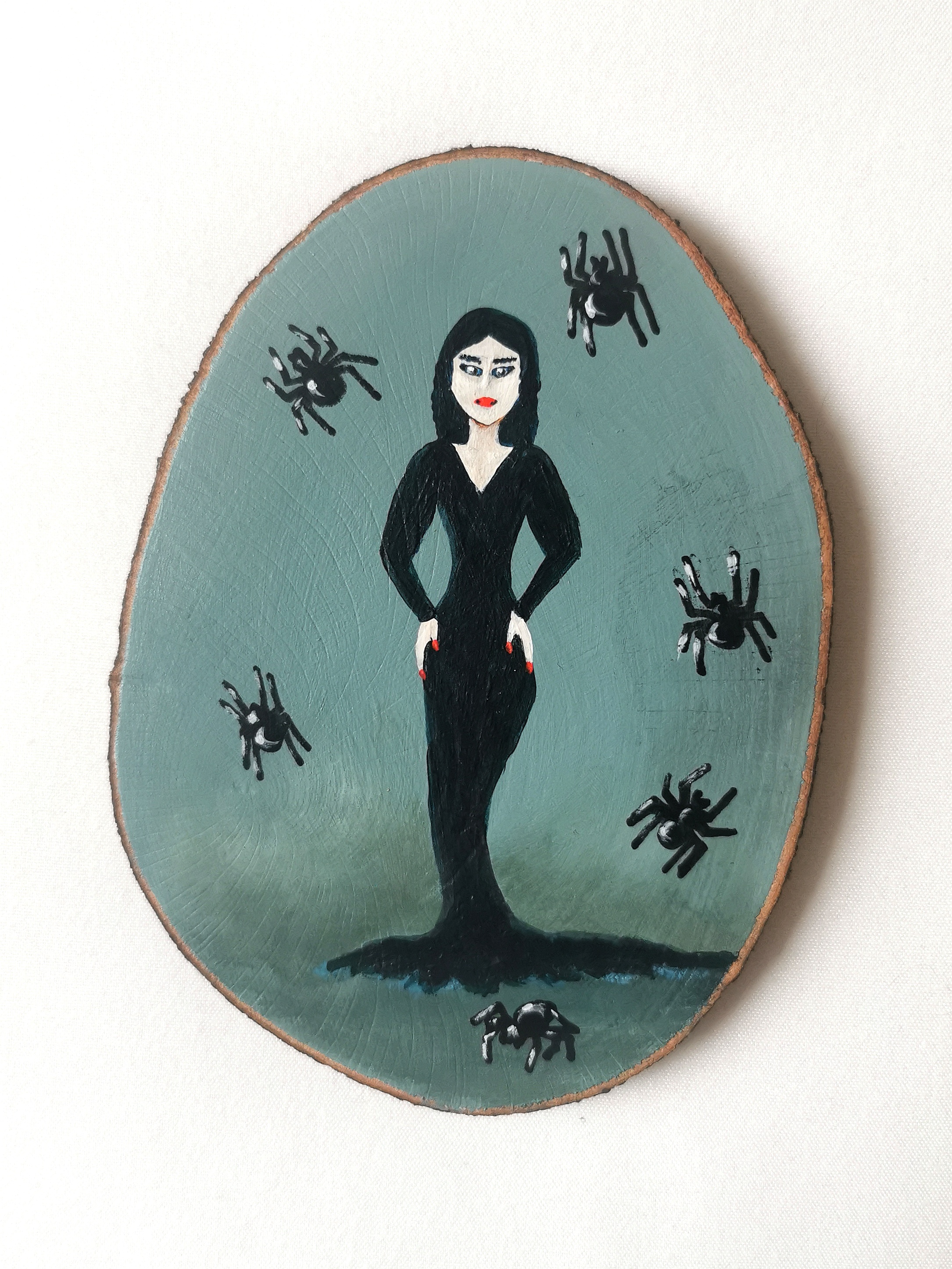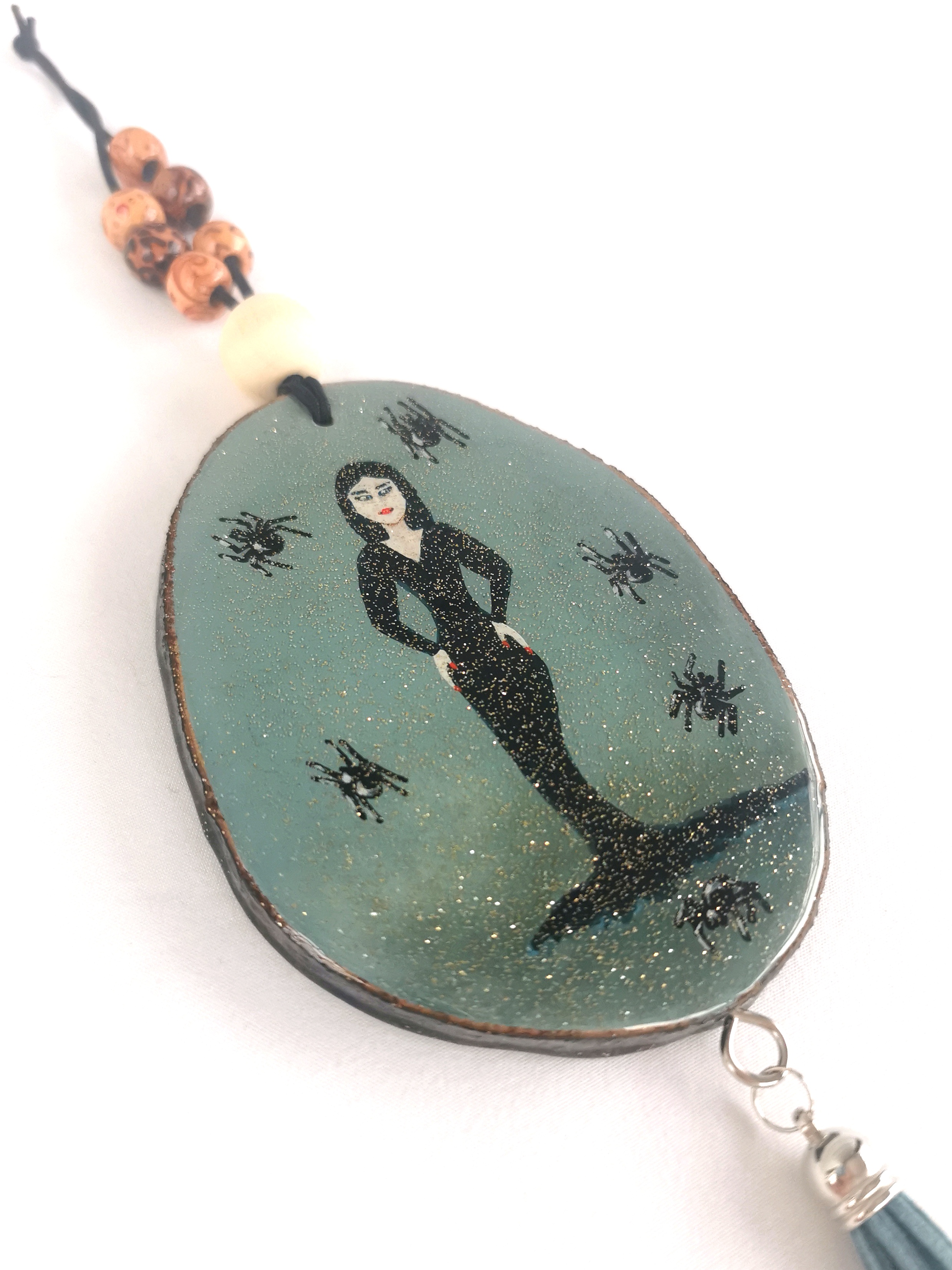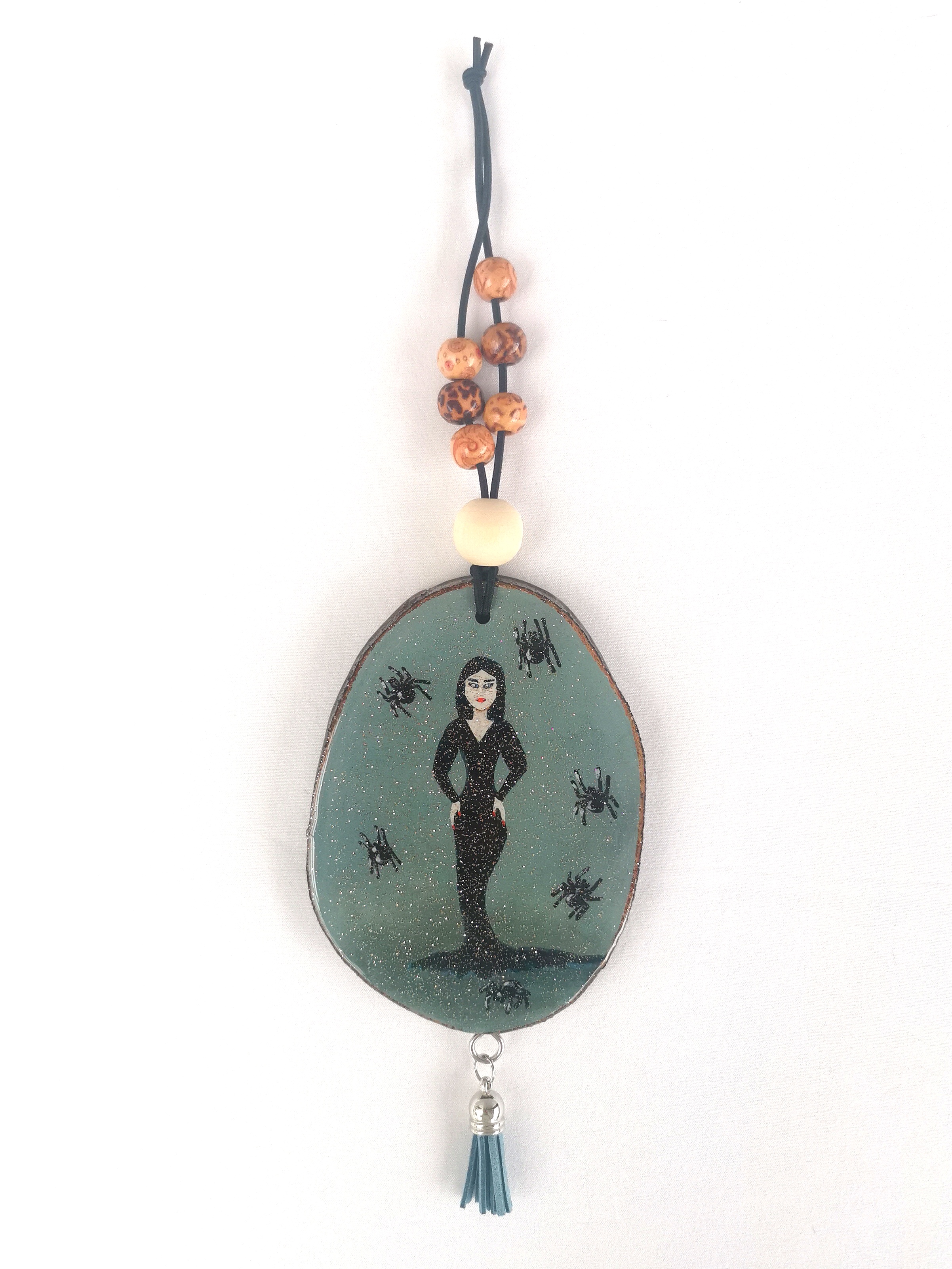 Lady in black, Morticia inspired painting turned into a spooky car charm!