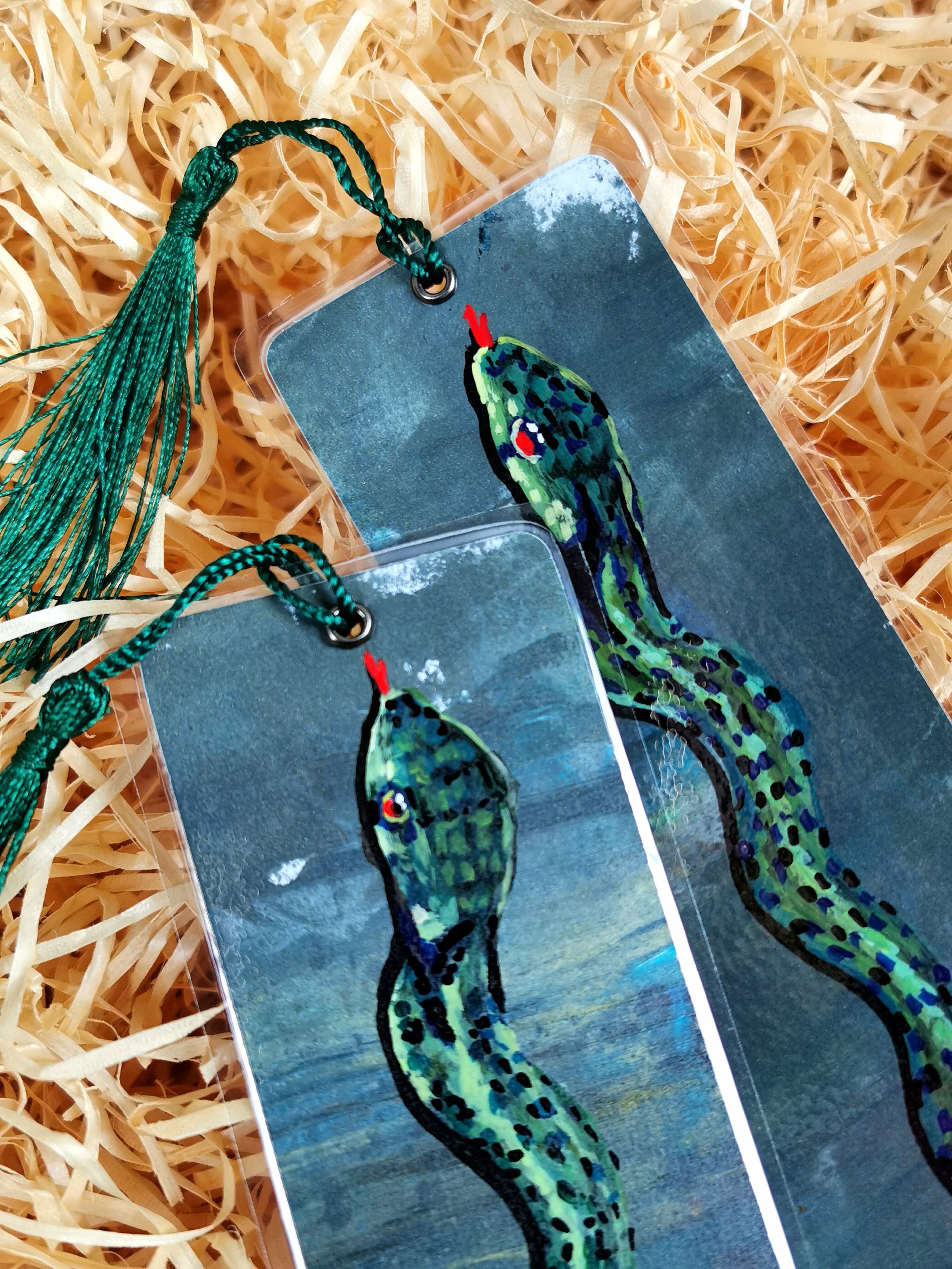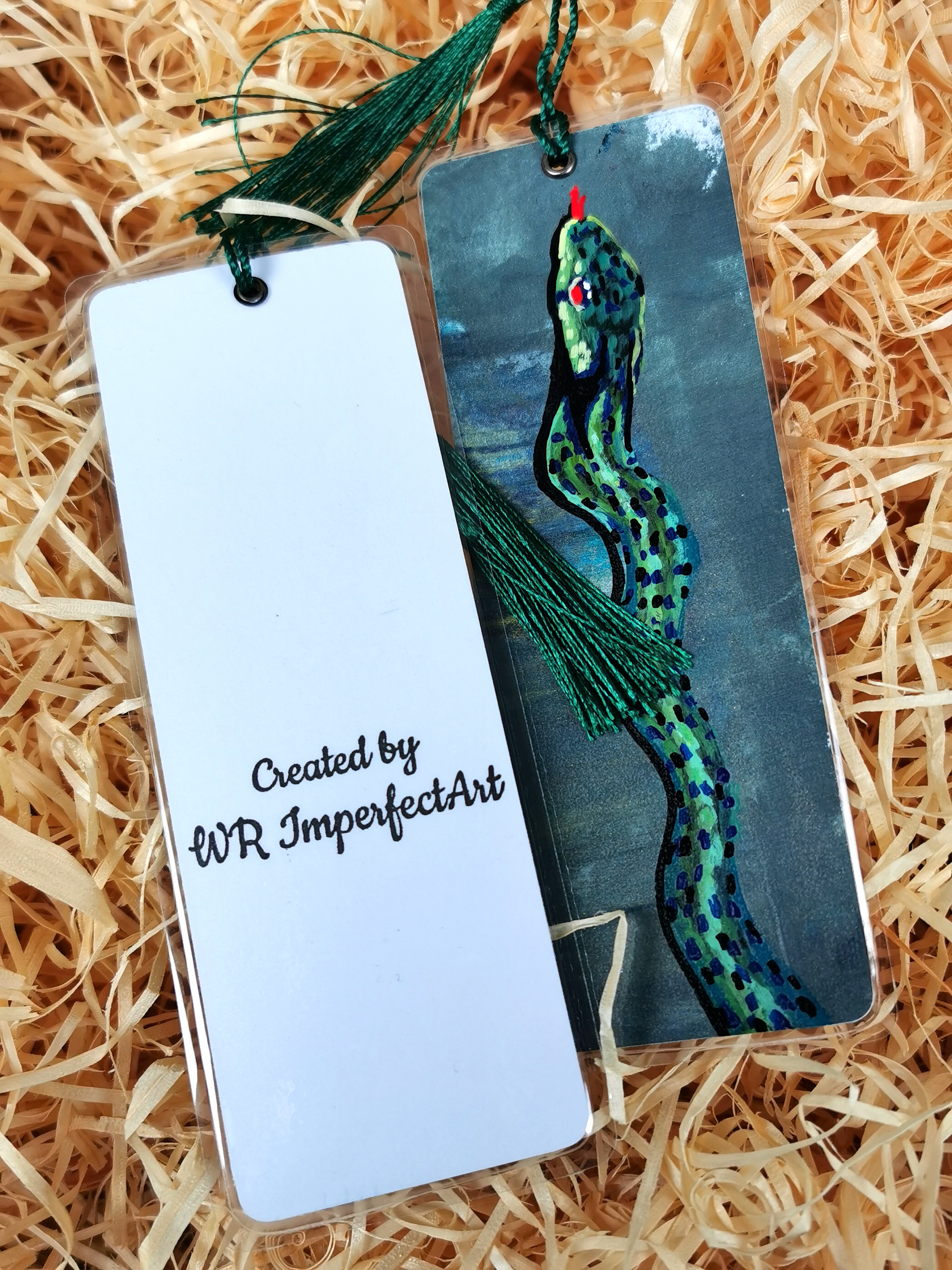 Laminated bookmarks – each one handpainted in acrylics and laminated by myself for a long lasting protection of the artwork!
